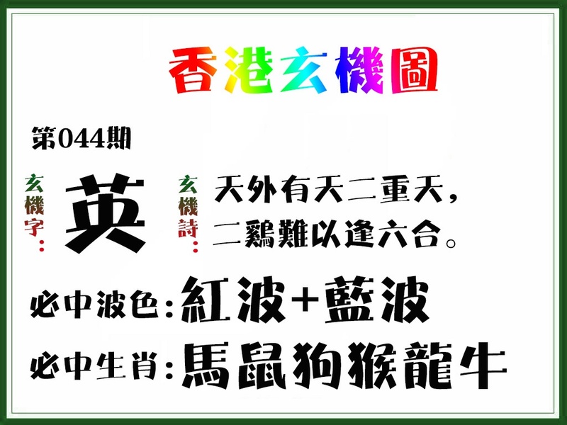 | 042期 | 战火连天守家园,蓝天映照蛇羊舞。 | 鸡34准 | ||||||||||
